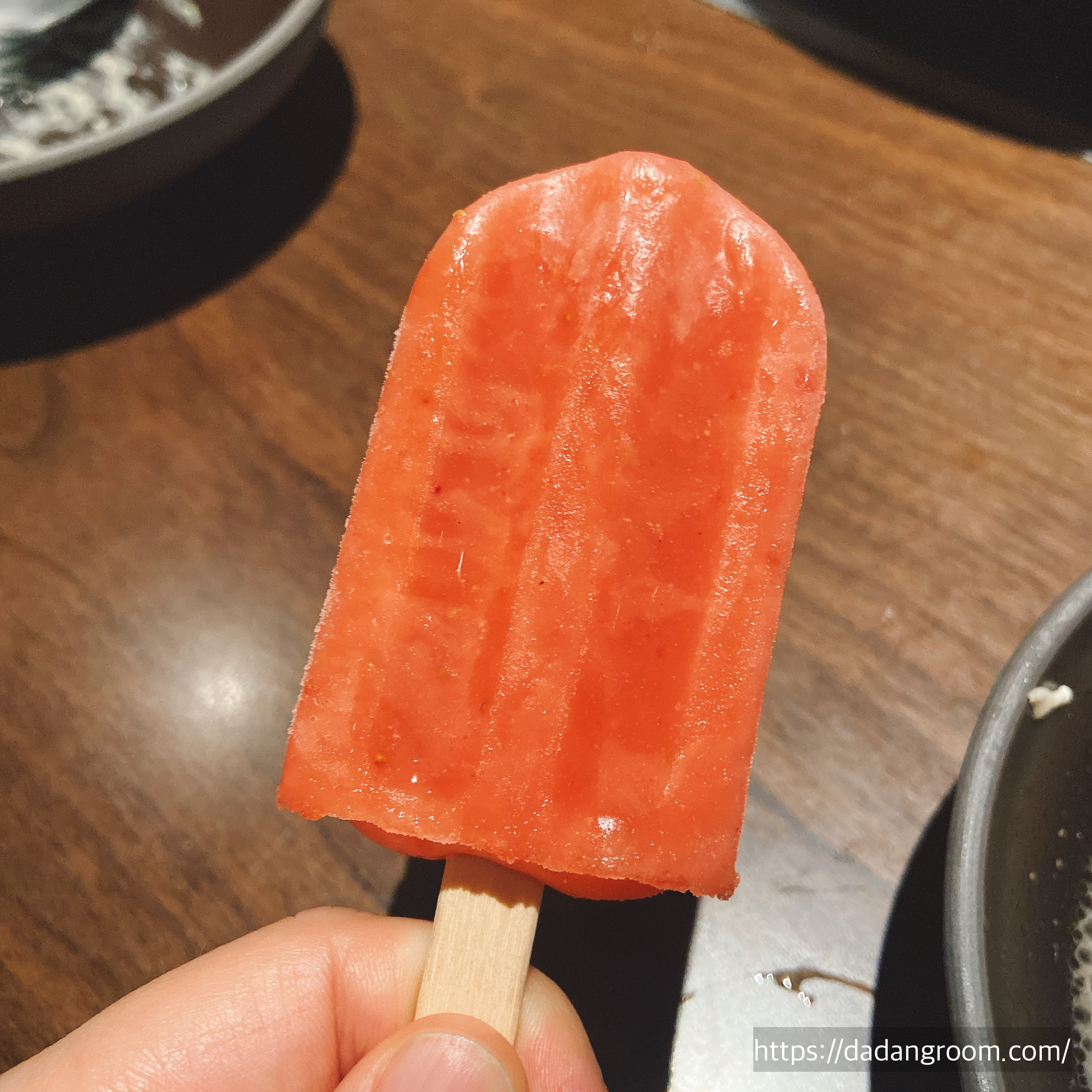 식사 후에는 미니 아이스크림이 디저트로 나와요. 소소하지만 과일 베이스로 만든 아이스크림이라 상큼하게 마무리되니까 기분까지 좋았어요. 전체적인 코스가 깔끔하여 짜여 있어서 서비스받는 느낌이 확실히 드는 고급 샤브샤브집이었어요.