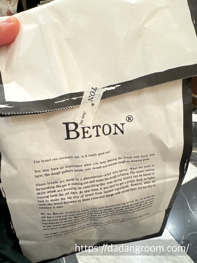 베통은 즉석 제조된 따끈한 빵을 종이 포장지에 담아주기 때문에 블루베리, 초코, 트러플, 패딩턴등 충전물이 들어간 제품은 이염방지를 위해 비닐 추가 구매를 꼭 추천드려요. 직원분들도 친절하게 이 부분을 안내해 주시니 꼭 참고해 주세요!