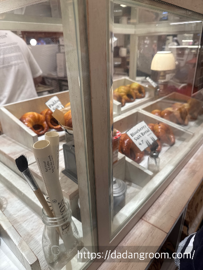 이벤엔 플레인(기본 소금빵) 2개, 블루베리 1개, 솔티초코 1개로 골랐어요. 특히 솔티초코는 친구 선물용으로 구매했는데, 너무 맛있다고 다음에 또 사달라고 해서 다음에 근처에 약속이 있을 때 웨이팅 하러 와야겠어요!!