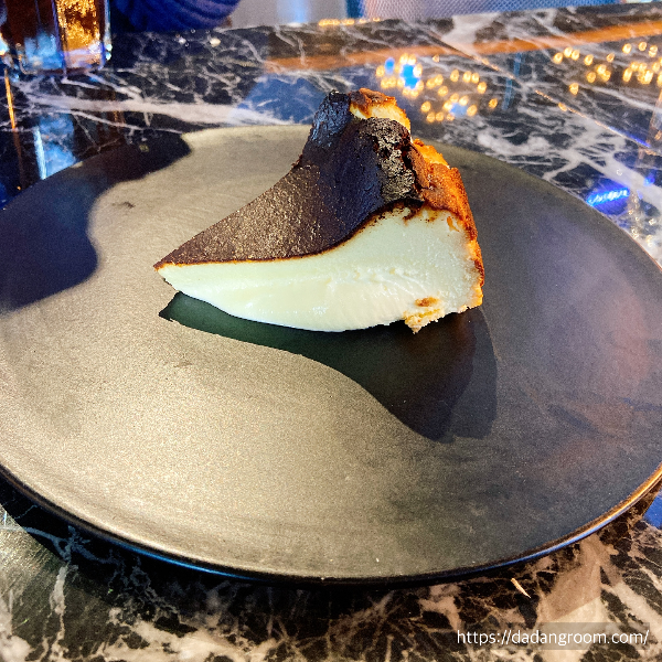 마지막은 디저트로 '산 세바스챤 오리지널' 치즈케이크를 선택했어요. 밀가루가 전혀 들어가지 않은, 스페인식 바스크 치즈케이크인데, 진짜 촉촉함 그 자체. 흘러내릴듯 부드럽고 진한 치즈 맛이 혀끝에 감기는데, 한 조각만으로도 행복감이 밀려오더라고요. 느끼함 없이 깔끔하게 마무리할 수 있어서 식사의 마무리 디저트로 완벽했어요.