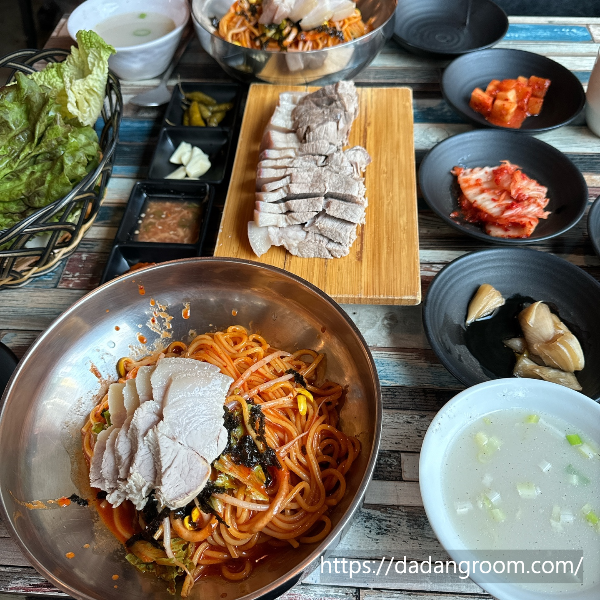 비빔국수와 돔베고기 조합, 생각보다 훨씬 괜찮았어요