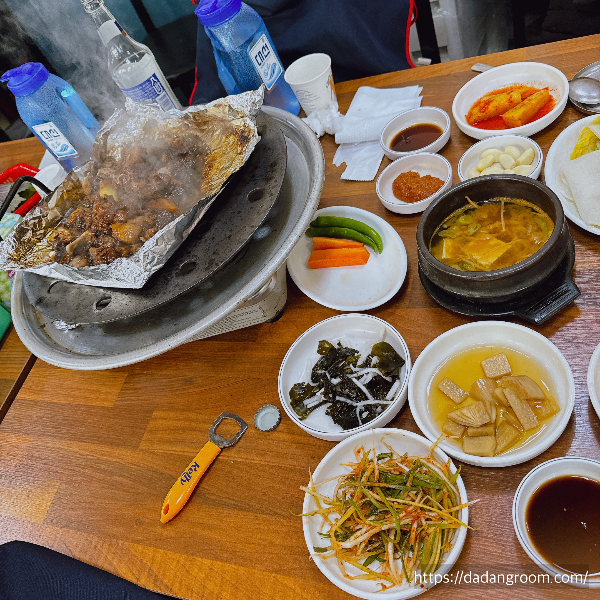 마지막 날에는 제대로 된 한 끼! 돼지갈비 상차림이 푸짐하고 된장찌개까지 완벽한 조합. 고기는 부드러웠지만 간이 조금 많이 달아서 단맛을 좋아하지 않는 분들에게는 추천드리지 않아요! 그래도 나름 현지인분들도 많이 오시는 숨은 맛집인거같더라구요!